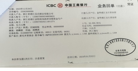 公司在2023年12月又向浦江县黄宅乡贤基金捐赠人民币50000元整,定向用于帮扶民营企业,为推动黄宅经济发展献出微薄之力。