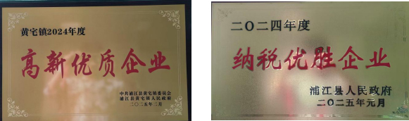 2024年度“纳税优胜企业”、2024年度“高新优质企业”荣誉称号